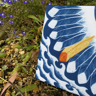 One of our studio holders, Rachael Prime has been working on new techniques to her art practice. Combining embroidery and Cyanotype together to create new designs. Here is her thoughts on her latest piece Icarus.